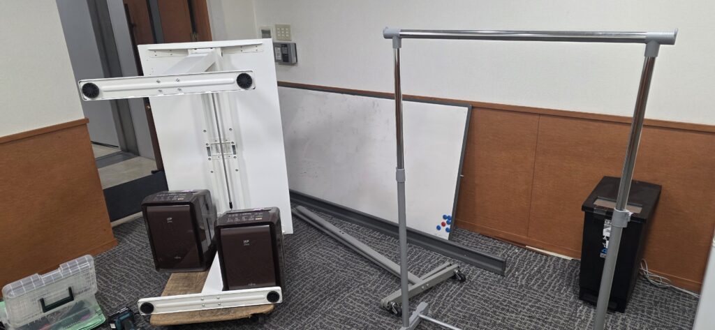 特にホワイトボードは、そのままではエレベーターに積み込めないサイズだったため、工具を使用して丁寧に分解してから搬出いたしました🔧