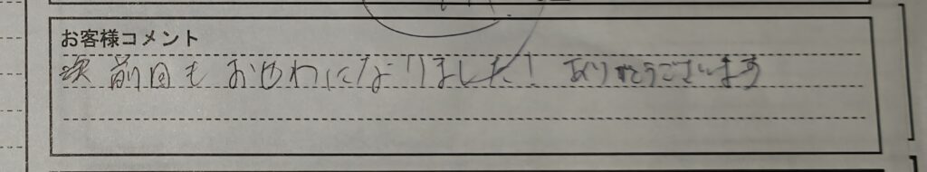 以下に、お客様直筆のアンケート用紙に