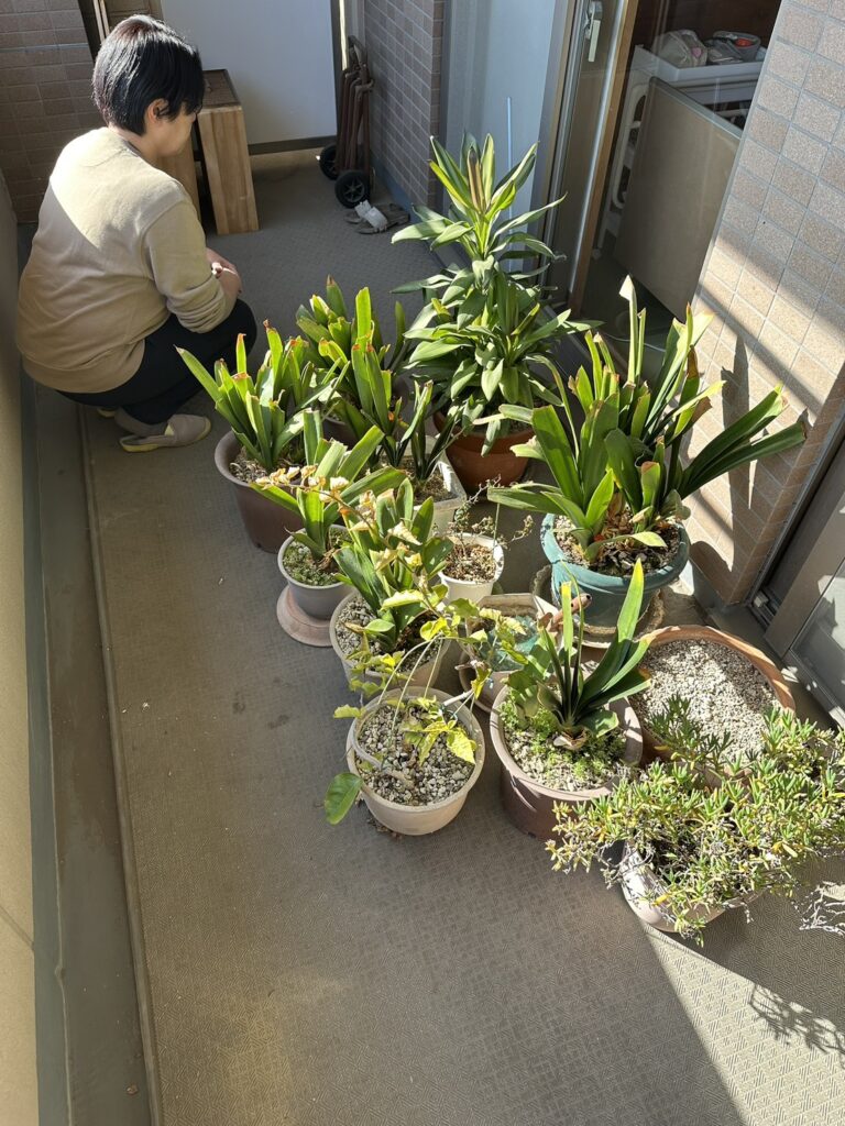 ベランダ内にたくさんの植木鉢や
